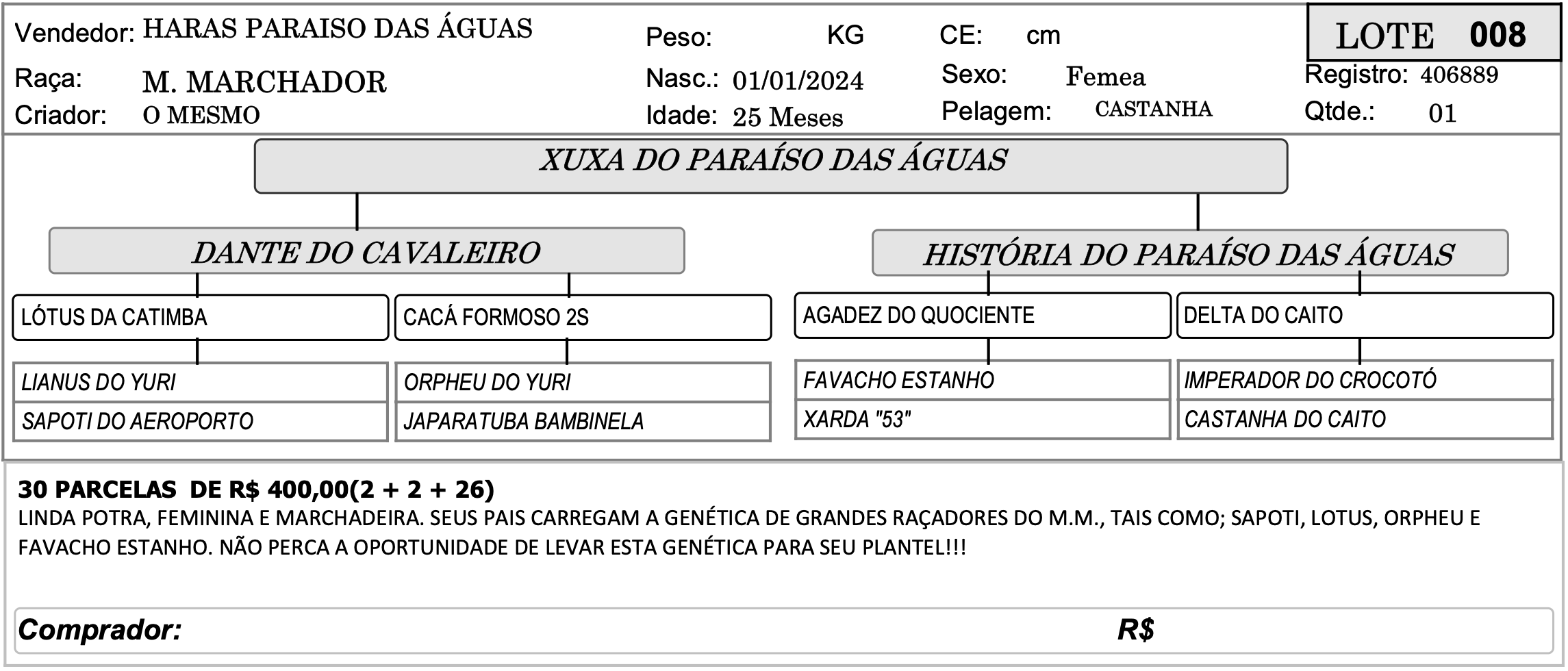 LOTE 008 - XUXA DO PARAÍSO DAS ÁGUAS 4º SHOPPING CRIAÇÃO - HARAS PARAÍSO DAS ÁGUAS 11 Valor da parcela:R$400 Ocultar formulário Buy Now Ao fazer uma oferta você concorda com os nossos termos e condições dispostos no site Inserir os termos e condições do Evento para o Lance!!!! Confirmar Lance Descrição Categoria 4º SHOPPING CRIAÇÃO - HARAS PARAÍSO DAS ÁGUAS « LOTE 007 - XAVANTINA DO PARAÍSO DAS ÁGUAS LOTE 009 - VERDADE DO PARAÍSO DAS ÁGUAS »