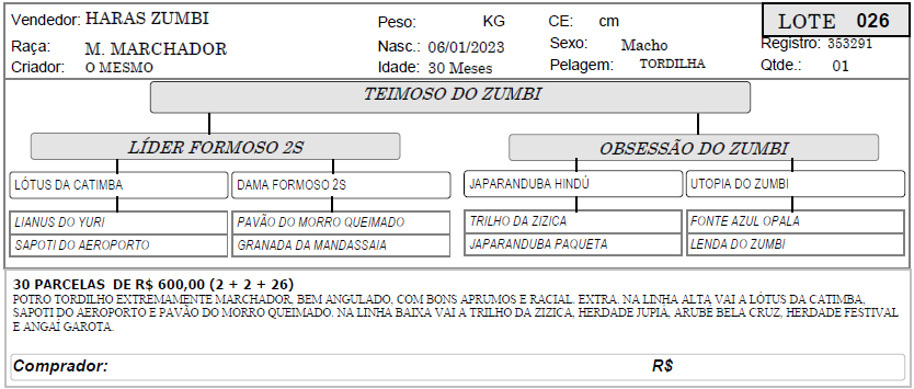 LOTE 26 - TEIMOSO DO ZUMBI 1º SHOPPING HARAS ZUMBI - BLACK HORSES 83 Leilão FinalizadoLOTE CONTINUA DISPONÍVEL Este leilão terminou. Pague Agora x Opções de Pagamento (R$0) Deixe-nos um Comentário Descrição Categoria 1º SHOPPING HARAS ZUMBI - BLACK HORSES « LOTE 25 - TENERIFE DO ZUMBI LOTE 27 - SHEIK DO ZUMBI »