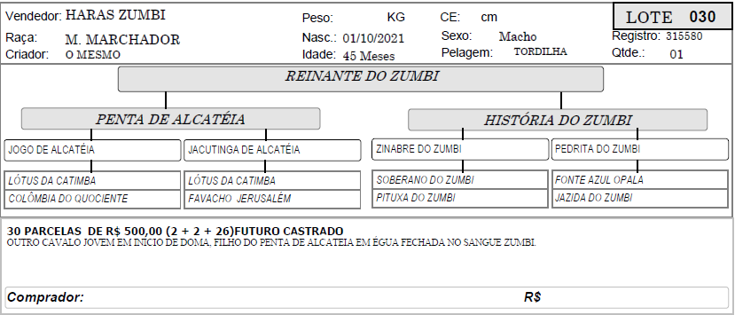 LOTE 30 - REINANTE DO ZUMBI 1º SHOPPING HARAS ZUMBI - BLACK HORSES 60 Leilão FinalizadoLOTE CONTINUA DISPONÍVEL Este leilão terminou. Pague Agora x Opções de Pagamento (R$0) Deixe-nos um Comentário Descrição Categoria 1º SHOPPING HARAS ZUMBI - BLACK HORSES « LOTE 29 - RAVELO DO ZUMBI LOTE 31 - REPENTE DO ZUMBI »