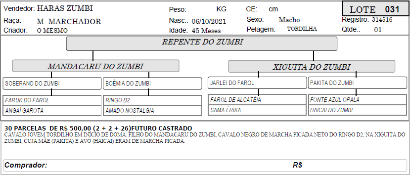 LOTE 31 - REPENTE DO ZUMBI 1º SHOPPING HARAS ZUMBI - BLACK HORSES 98 Leilão FinalizadoLOTE CONTINUA DISPONÍVEL Este leilão terminou. Pague Agora x Opções de Pagamento (R$0) Deixe-nos um Comentário Descrição Categoria 1º SHOPPING HARAS ZUMBI - BLACK HORSES « LOTE 30 - REINANTE DO ZUMBI LOTE 32 - REGISTRO DO ZUMBI »