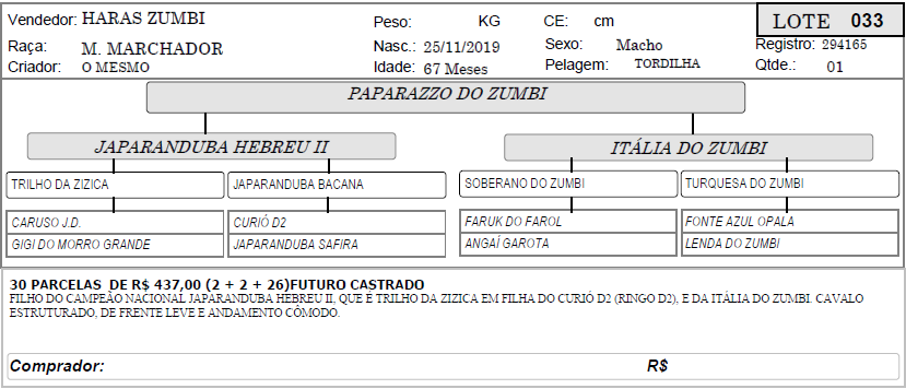 LOTE 33 - PAPARAZO DO ZUMBI 1º SHOPPING HARAS ZUMBI - BLACK HORSES 101 Leilão FinalizadoLOTE CONTINUA DISPONÍVEL Este leilão terminou. Pague Agora x Opções de Pagamento (R$0) Deixe-nos um Comentário Descrição Categoria 1º SHOPPING HARAS ZUMBI - BLACK HORSES « LOTE 32 - REGISTRO DO ZUMBI LOTE 34 - ORVALHO DO ZUMBI »