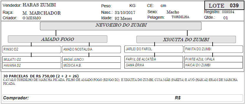 LOTE 39 - NEVOEIRO DO ZUMBI 1º SHOPPING HARAS ZUMBI - BLACK HORSES 130 Leilão FinalizadoLOTE CONTINUA DISPONÍVEL Este leilão terminou. Pague Agora x Opções de Pagamento (R$0) Deixe-nos um Comentário Descrição Categoria 1º SHOPPING HARAS ZUMBI - BLACK HORSES « LOTE 38 - NOVATO DO ZUMBI